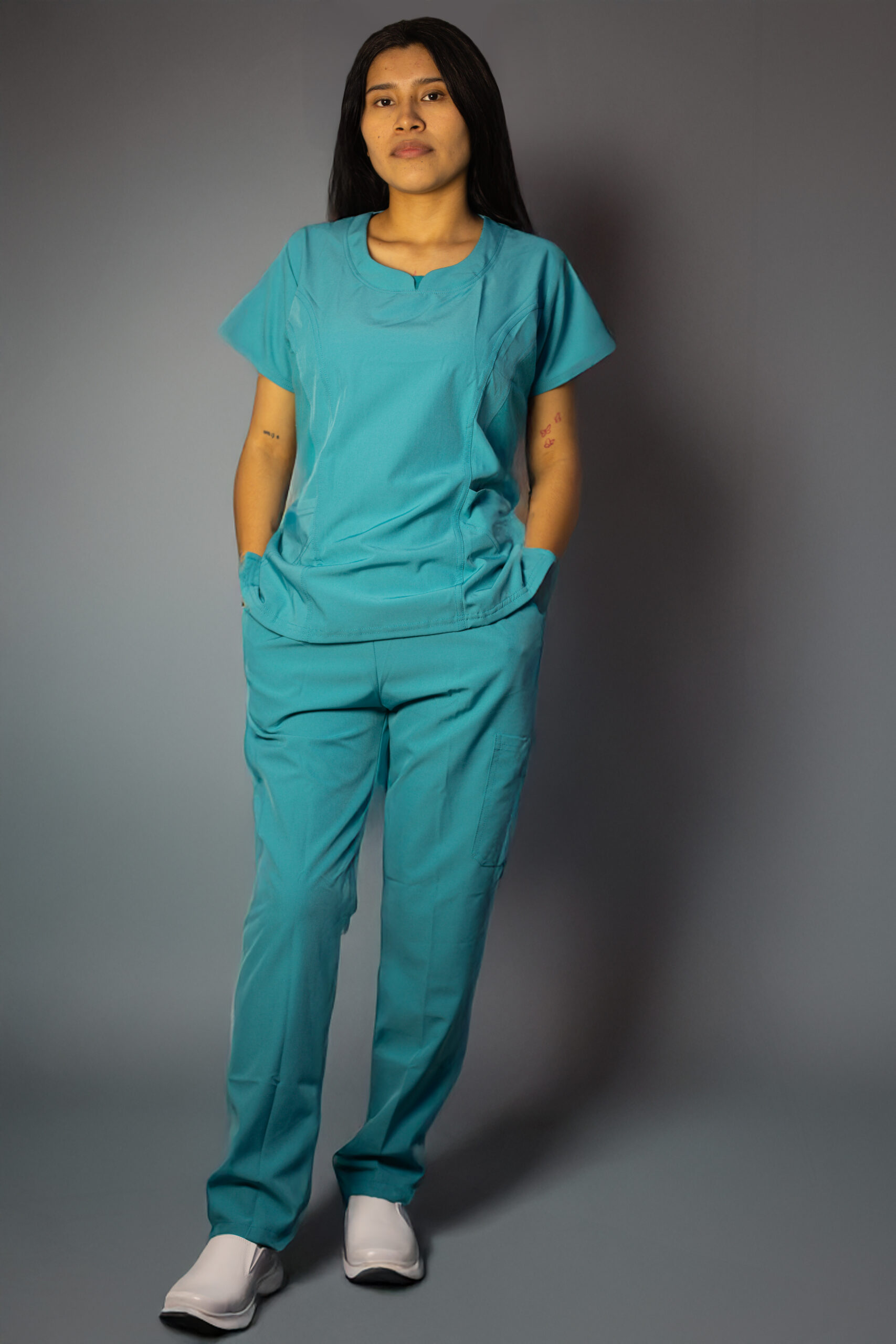 Disponible en variedad de tallas y colores. El conjunto incluye blusa con bolsillos funcionales y pantalón de ajuste cómodo, ideal para mantener libertad de movimiento sin sacrificar la estética.