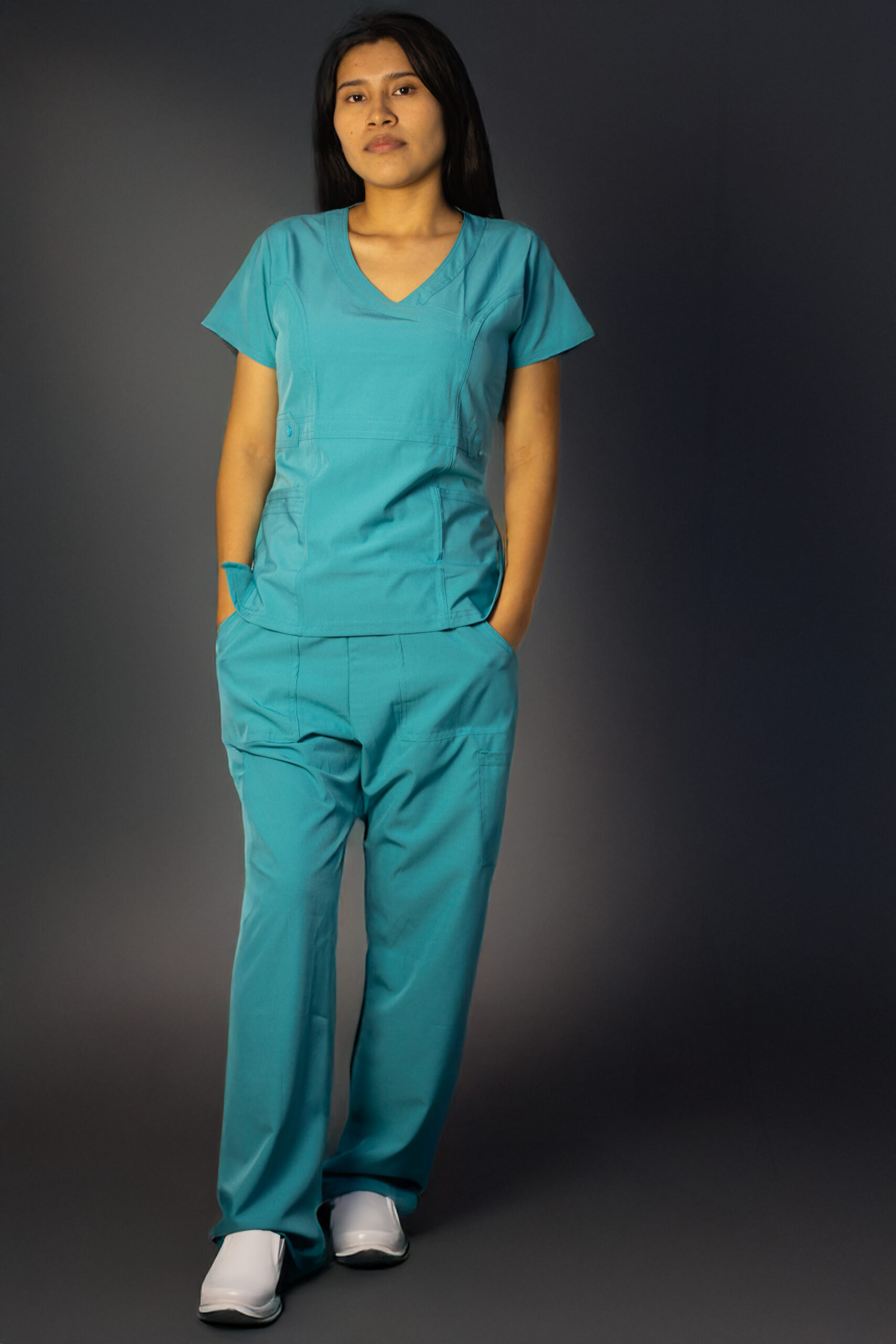 Disponible en variedad de tallas y colores. El conjunto incluye blusa con bolsillos funcionales y pantalón de ajuste cómodo, ideal para mantener libertad de movimiento sin sacrificar la estética.