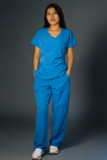 Disponible en variedad de tallas y colores. El conjunto incluye blusa con bolsillos funcionales y pantalón de ajuste cómodo, ideal para mantener libertad de movimiento sin sacrificar la estética.